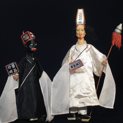 七爺、八爺七爺、八爺是城隍爺的部屬。七爺身材瘦長,白臉舌頭外吐,頭戴高帽,上面寫有「一見大吉」;八爺身材矮胖,黑臉雙眼外凸。兩者經常都是一同出現的。