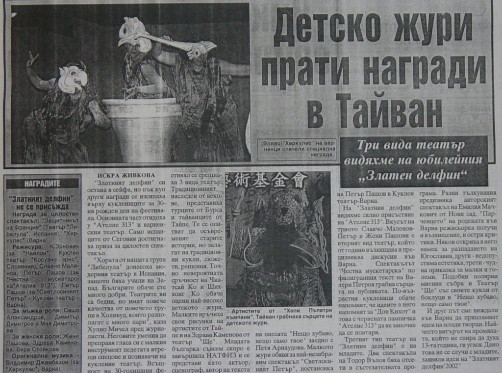 - 2002保加利亞金海豚國際偶戲節、日本神戶大阪春節藝術季