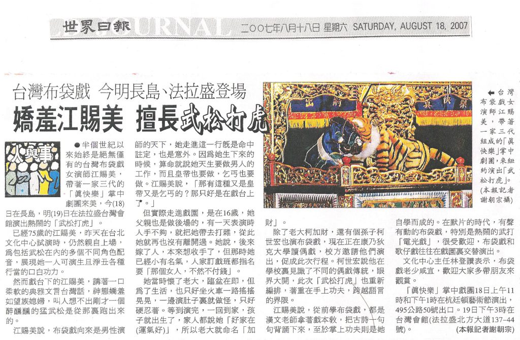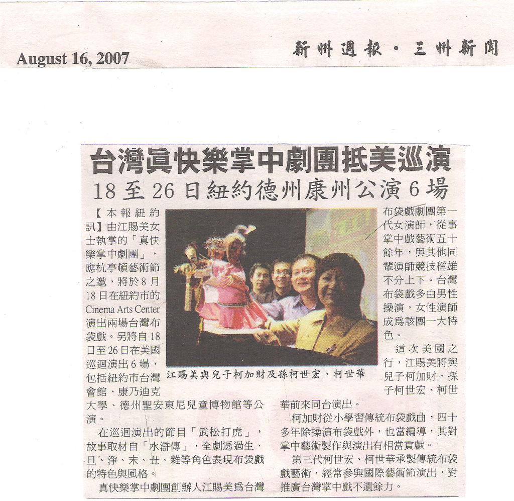 - 2007文建會主辦之真快樂掌中劇團美國巡迴演出