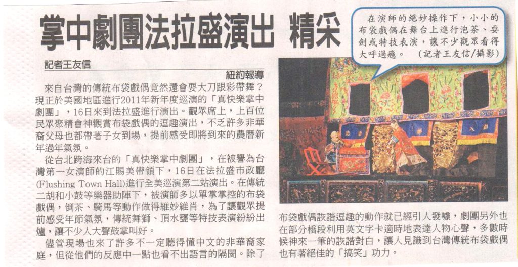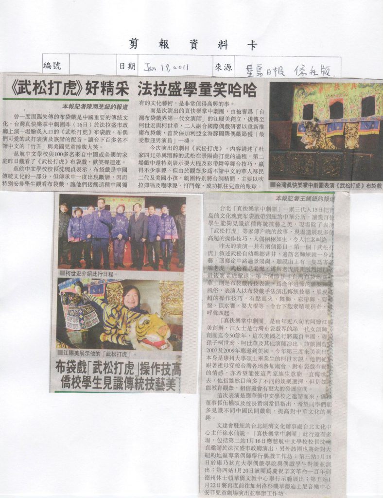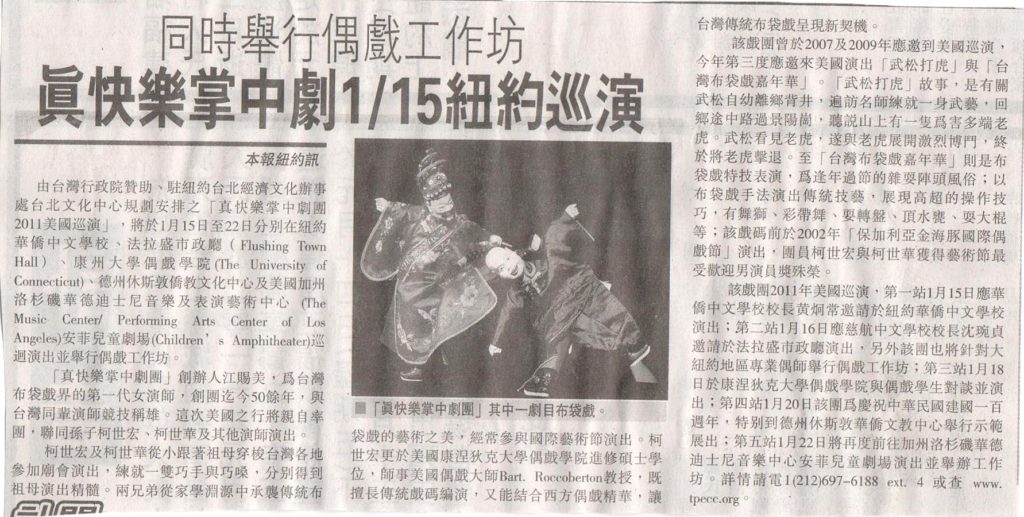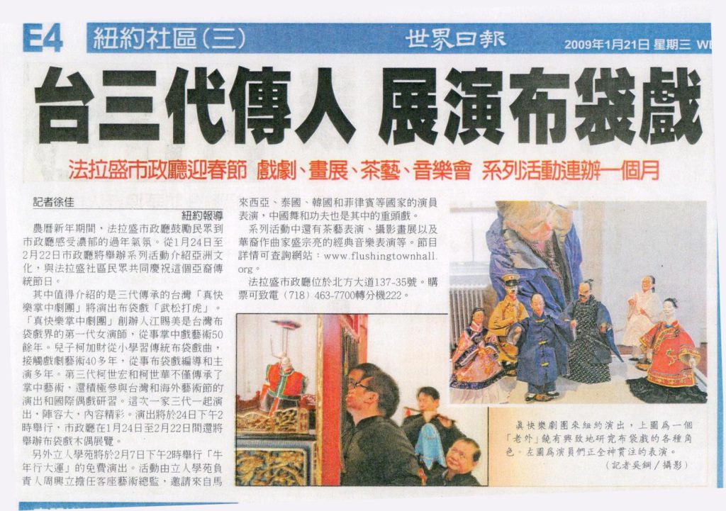 - 2009文建會主辦之真快樂掌中劇團美國巡迴演出