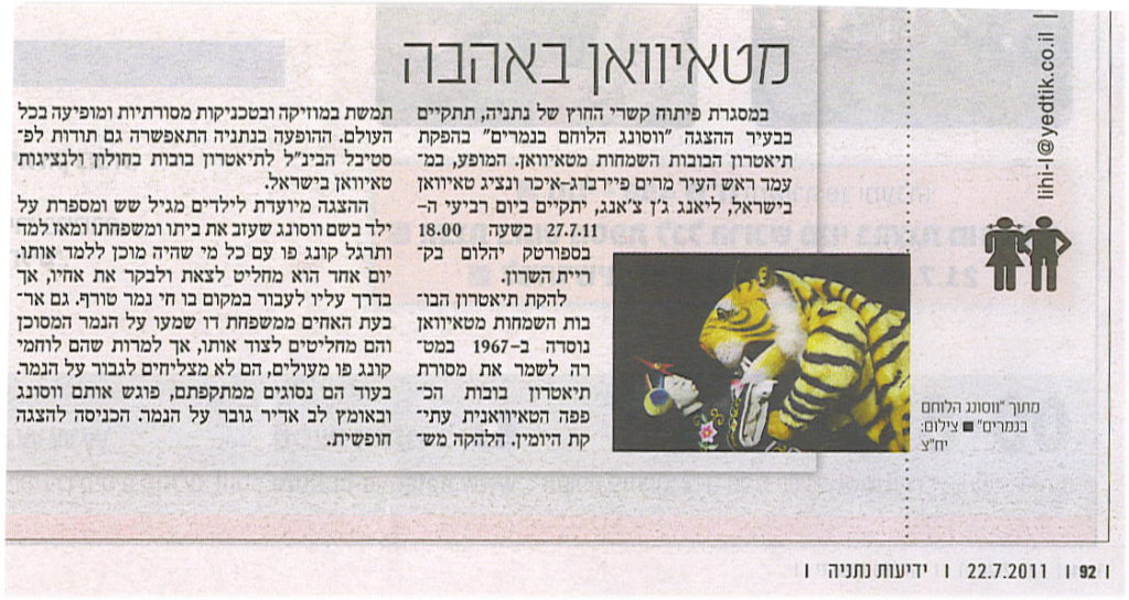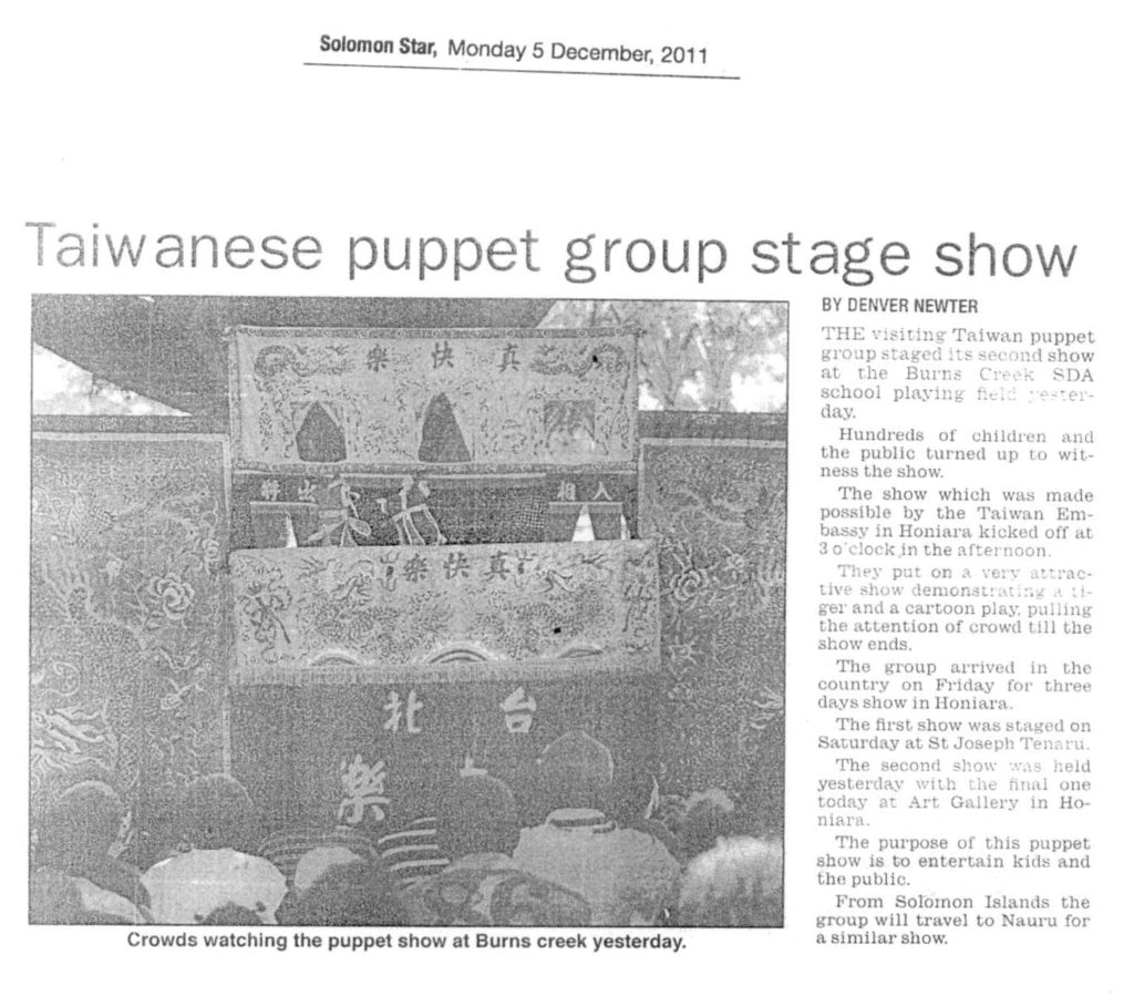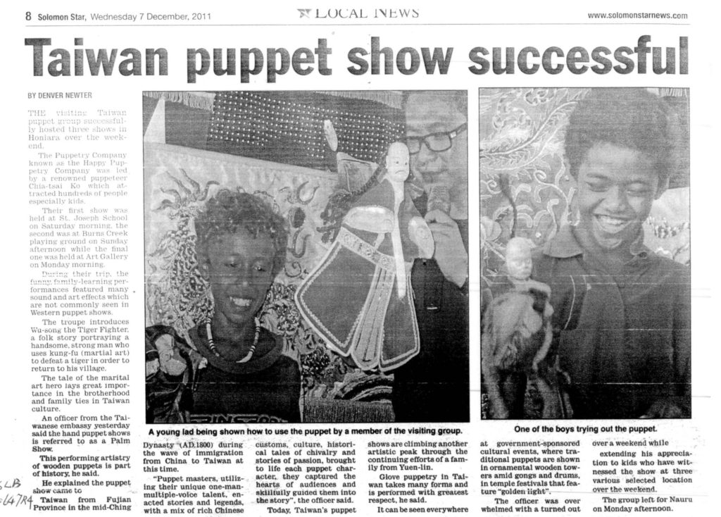 - 2011文建會主辦之真快樂掌中劇團美國巡迴演出、以色列國際偶戲藝術節、外交部主辦索羅門群島、諾魯交流演出